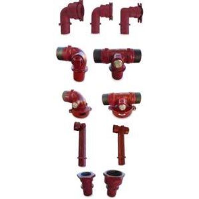 Lateral to mainline connection shall be made using Leemco Lateral Adapter. Adapter shall be made of ductile iron grade 65-45-12 (ASTM A536). Epoxy Coating on interior and exterior surfaces of fittings shall be fusion bonded epoxy, 10-12 mil thickness. The epoxy coating shall pass 90-Day immersion tests per CSA Z245.20-98. Lateral Adapter shall be offered with self-restrained bell, MPT and FPT outlets. The Adapter inlet shall have a swivel base to orient the outlet to any 360 degree position for ease and stress free installation. Non self-restrained Lateral Adapter shall be equipped with tapped and plugged 1” side outlet. Adapter shall be used with Leemco saddle or tee. All Lateral Adapters shall be manufactured by Leemco, Inc., U.S.A.