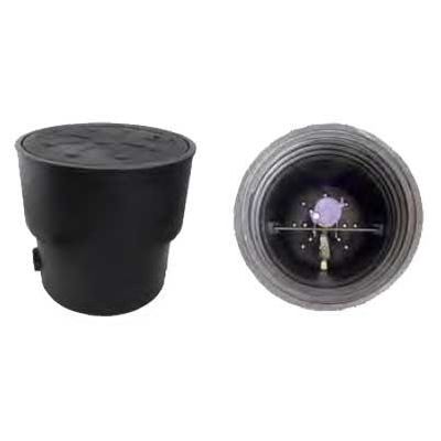 All quick coupling valves will be installed inside the Leemco LVB-12R ductile iron valve box. Valve box body and lid is constructed of Class 350 ductile iron per ASTMA A536, Grade 65-45-12, AWWA C153 standards. The ductile iron body and lid have a FBE (fusion-bonded-epoxy) coating, ANSI/AWWA C116/A21.16-09, NSF 61 and CSA Z245.20-98, 12-14 MIL. All connection fittings, ball valve and lid removal tool are constructed of 304 stainless steel. All valve boxes shall be manufactured by Leemco, Inc. U.S.A.