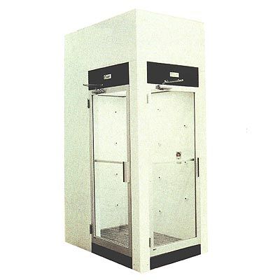 The Liberty AS-200 Air Shower is designed to provide maximum protection in high traffic areas, Ideal choice for durability and quality. Designed for continuous operation near controlled areas, Made of 3/4" novaply with white high-pressure laminate inside and out, Interior duct surfaces sealed to prevent shedding of particulates and protect unit from contamination. Trim - anodized aluminum, Wall to wall floor grilles are structural aluminum, Doors - anodized aluminum frame, 3/16" safety glass. Outside dim. - H: 128" W: 48" L, Door to Door: 48".