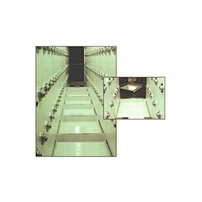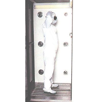 Designed for use in areas requiring a high level of decontamination performance, AS400 prefabricated, modular, 5 foot units can be combined with adjoining modules to meet custom specifications at prefabricated prices. Use at entrance to lunchrooms and cleanrooms after employees have been exposed to lead, Beryllium, toxic materials or hazardous contamination. It is designed to clean off clothes so employees can leave safely, 3/4" novaply with high pressure plastic laminate. Prefabricated and pre-wired. Consists of four basic sections: walls, floor, and electromechanical section (includes superstructure blower, motor, air filtration system, electrical fittings, lighting and electrical control panel), Removable metal pan in base catches excess particles. Bar grating 13/16" on center, 1" x 1/8" bar stock, 4" cross bar span galvanized.