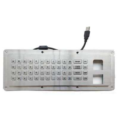 metal keyboard integrated touchpad, with front panel of 365 x 105 mm, suitable for outdoor or in door self-service terminals, industrial control etc. Specially designed for harsh environment, used brushed stainless steel material, and special water proof design, IP 65protect class, it has good performance of water proof, dust proof and vandalism proof, which make it a good choice for public use or harsh environment. Silicone switching elements, good tactile feedback, Sensitive touchpad as cursor device, Rack-mount version makes it easy to install, Laser engraved characters for excellent durable,No removable keycaps, Friendly layout and any language is available and it`s free of additional charge