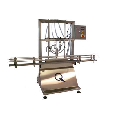 Semi-automatic pump fillers manufactured by LPS on a full frame allow packagers to fill up to sixteen bottles per cycle with operator assistance. Operators can accurately fill bottles by volume by placing containers under the fill heads, activating the cycle, and removing containers once complete. Manufacturing a semi-automatic filling machine on a full frame gives packagers the ability to upgrade in the future, up to and including automating the filling machine.
