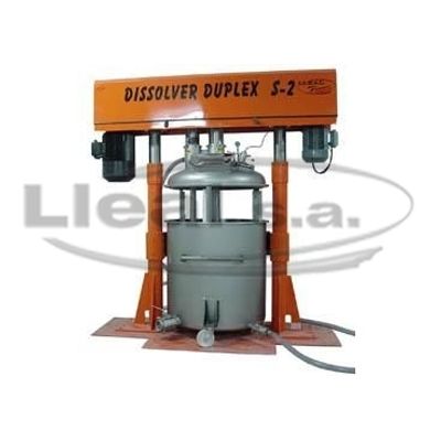 The Duplex Dissolver combines two different processes: dispersing operation by means of a cowles-type disc of high speed and mixing operation through three mixing blades of slow speed movement. The slow speed blades facilitate the mixing as they force the product to pass through the cowles-type disc, thus avoiding a vortex and therefore achieving a homogeneous mixing of viscous products. The Triplex Dissolver also combines two processes: an intensive dispersion operation, in this case, using two cowles-type disc of high speed and a mixing operation by means of a loop anchor-type of slow speed.
