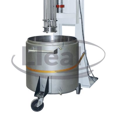 The COAXIAL dissolver is a processing equipment designed for the mixing and dispersing operations of products, both liquid and with a viscosity of up to 1 million cP. They are high-throughput machines, equipped with two agitation systems, with independent motors and an adjustable speed. The central main shaft consists of a cowles-type dispersing disc with high shear power. This system is complemented by a coaxial drive blade, which turns around the vessel, pushing the product towards the vortex generated by the turbine. A scraper, usually made of PTFE, is installed at the end of the blade, adjustable to the inner diameter of the vessel, which sweeps the walls to prevent the creation of impurities. For processes that require it, this equipment can incorporate a cover prepared to work under vacuum.