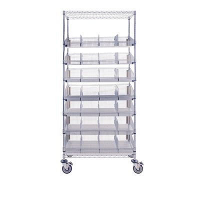 LogiQuip’s 9 Tier ParWire Basket Shelving Cart is configured with ParWire Fine Mesh Standard Basket Shelves for high capacity storage of even your smallest items. When paired with the included Dividers you can organize your stored items as needed.