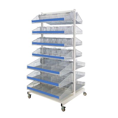 Our Double Sided Freestanding ParWall Frame Mount Cart comes standard with a heavy-duty steel frame and ParWall Fine Mesh Basket Shelves that can be mounted back-to-back to maximize storage capacity. This cart can accommodate 48”W Basket Shelves and comes with a mix of 12”D and 18”D Basket Shelving that can be adjusted in 1” increments so that it can be configured to fit almost any need. In addition, this unit comes with one slant shelf that allows supplies to slide forward for easy access.