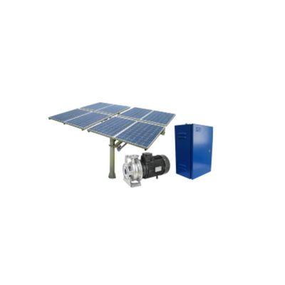 RANGE OF PERFORMANCE:- Maximum flow : 780 m3/day, Maximum head : 57 metres. Rating : up to 30 HP. OPERATING CONDITIONS :- Ambient temperature : +50°C, Liquid temperature range : 0°C to +80°C, Water pH : 6.5 - 8, Sand content : 25 g/m3. FEATURES & BENEFITS: Highly durable Stainless Steel construction of pump end, Highly energy efficient centrifugal water pump with energy efficient inverter duty motor, High efficiency solar photovoltaic panels with a service life of minimum 20 years, Robust design Galvanized steel mounting structure for long life, High technology automatic controller with dynamic MPPT (Maximum Power Point Tracking) control method, The controller offers complete protection against under and over voltage and dry run protection for the pump, Highly efficient controller with a conversion efficiency of 98%, The controller is tropicalized to operate satisfactorily with an ambient temperature of up to 50°C