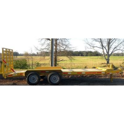 Capacity: 20,000 lbs. Overall Width: 102”. Deck Length: 30’ – 40’. Main Frame: 12 @ 19 Beam. Axles: 10,000 lb. Suspension: Slipper Spring. Brakes: Electric / Air. Tires: 235 80R 16 (8 Bolt). Jack: Dual. Hitch: Adj. 3” Pintle Ring. Tie Downs: 4” Straps. Lights: LED. Paint: Black or CAT Yellow