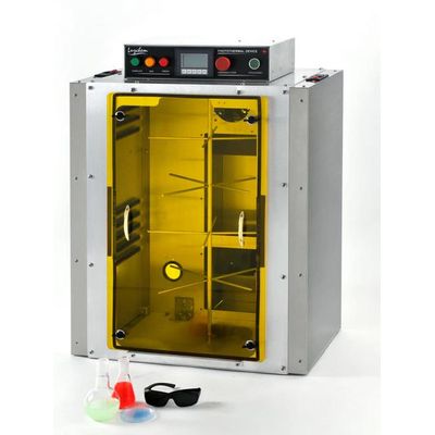 The latest in exposure chamber technology. Fully computerized using a USB interface. Logs exposure conditions, type and quantity of lamps used and exposure time. The photoreactor accommodates 14 or 16 (8 Watt) lamps depending on the option chosen.Includes safe exhaust system, safety goggles, installed drive motor, carousel, turntable, recessed magnetic stirrer, bulkhead connector for gases, UV/VIS power sensor and timer. Includes notebook computer with pre-installed CCP software.Luzchem Research - Lrgest Photoreactor
