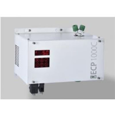 Electric gas cooler type ECP1000C with display and capacitive control panel, for ambient temperatures up to +50 °C, with Peltier element, electronically controlled from +2 to +15 °C (preset to +5 °C), adjustable high/low temperature alarm with 1 potential-free relay contact, integrated LA evaluation, without heat exchanger, power: 115 to 230 V AC/50 to 60 Hz pluggable. One stream, max. flow 150 Nl/hr, different materials of heat exchangers, power 115-230 V AC/50-60 Hz.