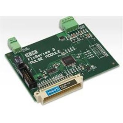 The FloSeries3 Pulse I/O card powers (+5VDC or + 12VDC) a single pulsing flow sensor and provides a pulse output. This allows an XCi device the ability to sense pulses from non-MACE flow sensors.