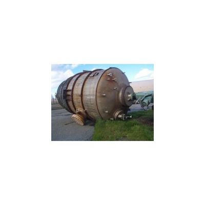 Crystallizer, 8,000 gallon capacity, manufactured by Struthers Wells, "Krystal", cooling type crystallizer. Constructed of 316 ELC stainless steel, design pressure -15 PSI external full vac @ 200 deg. F. and 20 PSI internal @ 250 deg. F. Suspension chamber measures 10` outside diameter x 9` straight side, 6` cone bottom. 38" center top nozzle, 20" top side manway, 24" side manway, top head thickness 3/8" and bottom head and shell thickness of 5/16". Complete with Lightnin agitator (coil has been removed). Agitator driven by 7.5 HP motor, 67 output RPM on shaft, shaft includes (2) 3-blade paddles. Good condition.