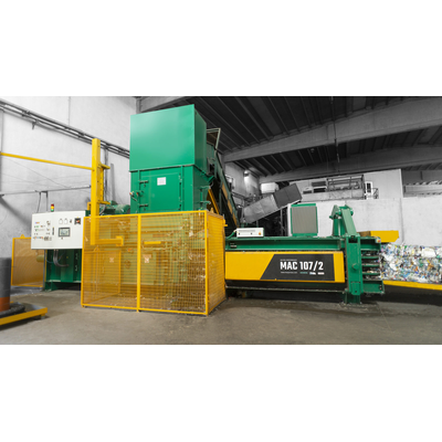 The MAC109/1 baler has been specially designed for compacting medium and large quantities of materials: recyclables, waste paper, aluminium cans and plastic materials difficult to treat such as big bags and rigid plastic.
