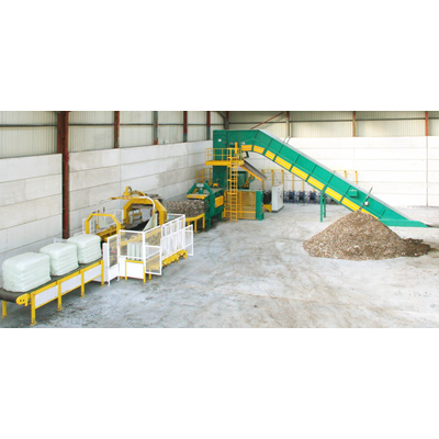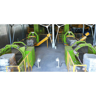 It bales MSW, commercial and industrial waste, RDF. The MAC 110L/2 is a baler specifically designed to bale waste with a capacity of 40-45 T/h.