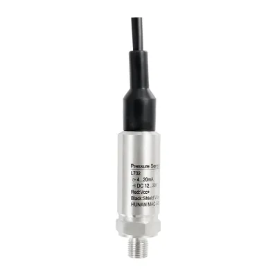 The L702 is a fully sealed submersible pressure transmitter designed for precision and durability, suitable for a range of demanding applications. This device integrates a highly stable and reliable piezo-resistive pressure sensor with an accurate circuit board, all encapsulated in a robust stainless steel housing. The construction ensures long-term immersion in various media without impacting performance. It covers a range of 0-0.1 Bar to 50 Bar, or 0-1 meters to 500 meters H2O, offering multiple output options including 4-20 mA, 0-5V, 1-5V, 0-10V, 0.5-4.5V, RS485 and RS232. The power supply options vary from 5V DC to 36V DC, with customized battery and temperature compensation options. Accuracy stands at ±0.5% F.S standard or ±0.25% F.S customized, while the working temperature range extends from -30℃ to 80℃, or up to 100℃ if customized. The L702 can be applied in diverse areas including water treatment, sewage processing, river and borehole levels, and industrial pressure measurement.