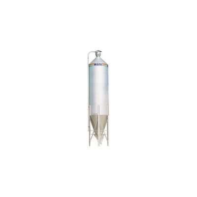 MAFA modular silo is manufactured in sizes from 0,2 m3 to 91 m3. As standard the silo is manufactured in galvanized, square or rectangular modules easy adaptable to any need. The silo is equipped with flat roof, closing valve and inspection hatch. The silo can be delivered with or without filling tube and dust filter. The cone is delivered with 45 or 60 gr. slope. The outlet is 300 x 300 mm with shutter, or 500 x 500 mm with two shutters and a dividing sheet in the middle of the cone.