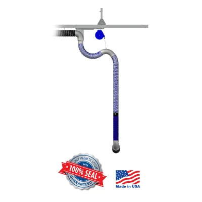 Ideal for Lower Ceilings and Narrow Spaces: MagneGrip’s Sliding Flexhose Track (SFT) is the most compact source-capture system available. It is the ideal system for firehouses with back-in bays that have low ceilings or narrow spaces between vehicles—needing only 19-24 inch aisles. The SFT system has no hanging hose loops that block access to doors or loading. The expandable Flexhose extends and retracts along the track as the apparatus moves forward and back. When the apparatus operator starts the engine, the exhaust fan activates automatically. As the apparatus moves forward, the Flexhose extends to the end-stop and the nozzle automatically releases at the threshold of the door. The no-loop Flexhose system is completely sealed so no toxic exhaust fumes escape into the firehouse. When the apparatus returns to the firehouse, the fan switches on as the MagneGrip nozzle connects to the tailpipe. The apparatus is then backed into the bay.
