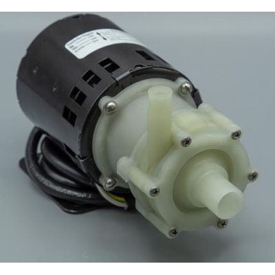 March Pump’s industrial 2CP-MD is an American submersible seal-less centrifugal magnetic drive pump. It is capable of generating a maximum flow of 5 gallons per minute at 1 foot, and its maximum head is 13 Feet (5.5PSI). The 2CP-MD pump must be used submerged. The standard wet end (the materials that come into contact with the solution) is composed of Polypropylene, Viton, Stainless Steel, Ceramic, and Ceramic Magnet.