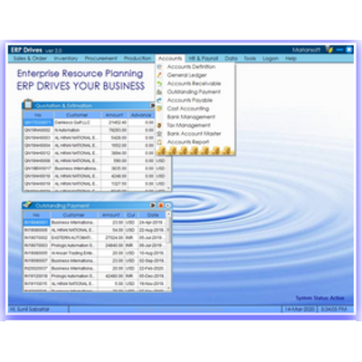 ERP Drives is an Enterprise Resource Planning software for Micro, Small and Medium Enterprise to operate their business in the field of Manufacturing, Trading, Mining and Textiles. This system consists of Sales & Order, inventory. Procurement, Production, Accounts, HR &, Payroll, Project Management, Weighing & Management and Tools to manage the application.