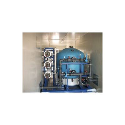 Models with nominal capacity of 712 l/h (7 7 m³/day) up to 45.583 1/h (1.094 l/day) complete with membranes to for seawaters able to remove 99% of salts and pumps for pressures up to 69 bar.