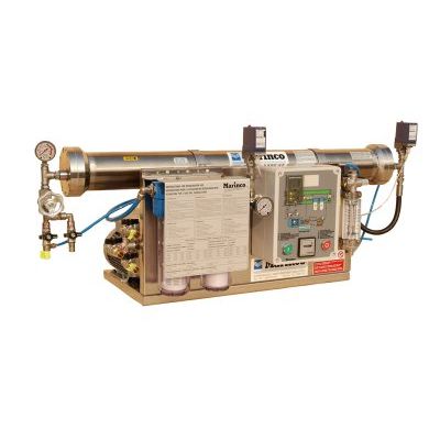 Marinco manufactures a comprehensive range of “containerized” or “skid mounted” desalination plants. The containerized systems are built inside of metal shipping containers and are assembled and fully tested at our facility before being delivered with no need for on-site system assembly, pipe work, electrical wiring or mounting of components. The container also serves as the shipping container so there is no need for wood crating or rental of sea containers in which to transport the system to its destination.