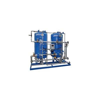 The MARLO `MDAS` Series is designed for larger industrial boiler-feed applications. Individual tank capacity ranges from 50,000 grain to 980,000 grain with continuous flow rates of 10-300 GPM. Tank diameters from 20" to 72" and service pipe connections from 1.25" NPT to 3" NPT are available. Multi-tank parallel, twin alternating, and triple alternating systems are available with a wide variety of timer and water meter controllers.