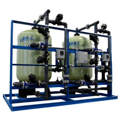 The MARLO `MFG-SM` Series is the corrosion resistant alternative to the `MFS` Series of media based water filters. These filter systems are equipped with FRP resin tanks and Sch 80 PVC exterior piping and valves. All `MFG-SM` systems are factory skid mounted, pre-piped, pre-wired for ease of installation. Pre-engineered standard designs available for twin and triple tank configurations for the following filtration technologies: