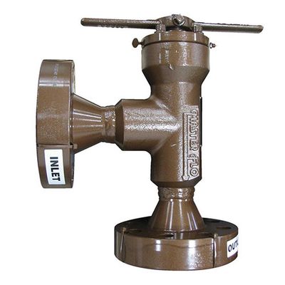 Valve Type: Right angle choke. Max. Pressures: 5,000 psi / 34,000 kPa, 6,000 psi / 41,000 kPa, 15,000 psi / 103,000 kPa, 20,000 psi / 138,000 kPa. Standard Connections: 2″, 2.5″, 3″, 4″. Standard Trim: Ported cage with external sleeve.