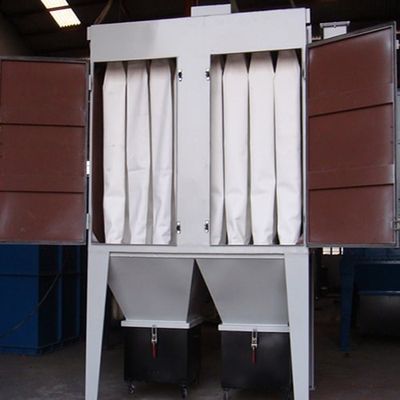 Multiple Tubular bag type dust collector with shaker cleaning designed for various air volume applications and solid particles filtration. Installed inside or outside of the facility without losing valuable floor space. The 99% efficiency filter allows clean air to be recycled back into the premises for maximum energy savings. Ferrous or non-ferrous manufacturing shops, plastics and composites fabrication as well as pharmaceutical plants and food industries. The manual or motorized cleaning systems filter particles from the filter and are then stored in a variety of bins, drawers or drums. Safety features such as explosion relief vents, back draft dampers or spark detection and extinguishing systems are available.
