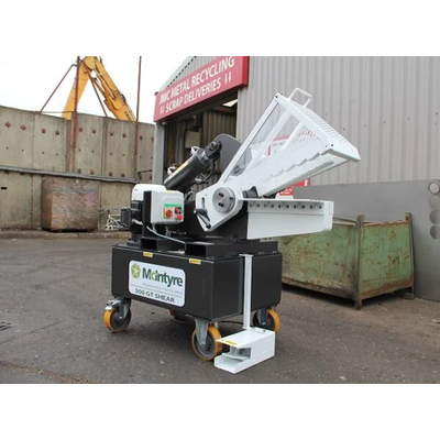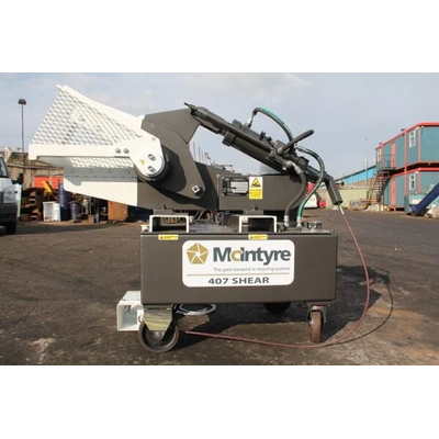 An affordable efficient 407mm (16″) blade shear with enough power and speed to handle a wide variety of cutting tasks. Built originally for scrapyard use, the McIntyre 407 shear is robust enough to withstand the most difficult of working environments. It is now our most popular alligator shear with more than 2000 still in daily use worldwide. The McIntyre 407 is able to handle; automotive scrap, whole gear boxes, cylinder heads and blocks, oversized gate valves and of course all the usual non ferrous metal separations. The 407 can also be used to cut ferrous metals.