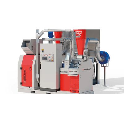 The compact MG 220 VZT cable granulation system is a complete, patented system for the recycling of copper and aluminium cable, radiators, electronic scrap and WEEE. The 220 VZT is able to process between 500kg and 600kg of cable an hour and is one of a range of granulation systems to suit operations of all sizes. It has a unique ‘zig-zag’ turbo system which automatically separates thick and rigid wire from household and fine cables. This means that production is dramatically increased and separation is improved.