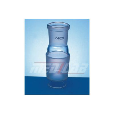 Reduction Adapter; Bigger Socket Joint at the base and a smaller Cone joint at the top. Precise fitting ground joints.