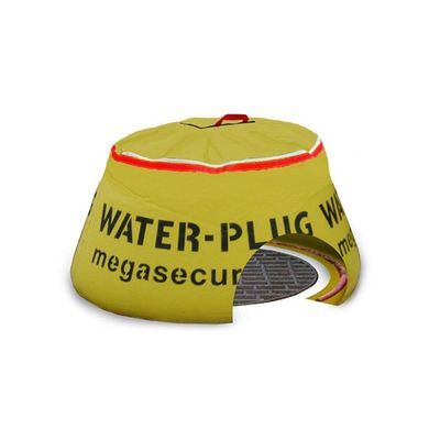 With the Water-Plug, you can quickly remedy to overflow cesspools and sewers. Simply unfurl and place the Water-Plug on the cesspool to contain the overflow water. It is as simple as that! It is the water that holds back the water. Because of the conical form, the Water-Plug deploys automatically when water fills the system.