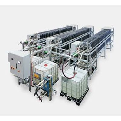 The memsys technology is based on vacuum multi effect membrane distillation, which is a highly efficient thermal process for thermal separations in a modular concept. These memsys modules consist of flat sheet membranes combined with an innovative plate and frame design made of Polypropylene. The patented construction allows to form all functionalities for the process and therefore transforms traditional heavy industry engineering into a unique monolithic industrial design.