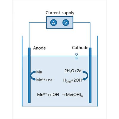 Complex reactions of electrochemical redox reaction, electrochemical coagulation and flocculation, and electro flotation are involved in ECO process
