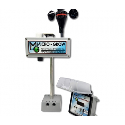 Protect your roof vents from damage with the Weatherstat system. Monitors high wind speed, and rain. The Weatherstat will send safety override signals to all connected ventilation motor controls. This unit will work with virtually any vent motor control system. More than one motor control may be interconnected if desired. Automatic system reset once the inclement weather conditions have passed. May be added to any existing system.