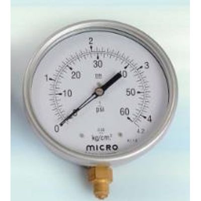 Micro Glycerin filled pressure gauges are ideal for dampening the effect of vibration & pulsation. It also lubricate the movement & internal parts which extends the life of gauge. It enhance the reliability and integrity of measuring system for long periods under extreme operating condition.