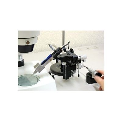 The work done by the hand can be done surprisingly easily, and work is not tired for a long time either. Because the XYZ three-axes operation can be done with the PC mouse, there is no blurring, and an exact operation can be done. It quickly takes out to use it, and a microscope on hand, the stereomicroscope, and the metallurgical microscope, etc. can be used soon by sideways putting it because it operates without the personal computer. Precise cutting that installs cutting attachment `Milling Pro`(MIL-1), Holding collection that installs `Micro Tweezers`(MTW-1) is possible to do freely. The content of work, the purpose, and frequency, etc. can use it best because it can use it by freely combining with a right and left right hand and the both arms.