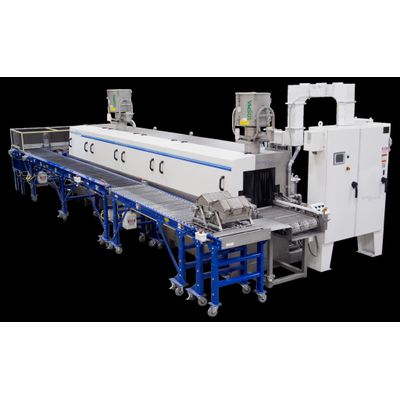 Aqueous industrial monorail parts washer provides an effective cleaning for many industrial applications on an in-line system. The process is streamlined and allows parts to pass through the entire application with a reduction of direct labor. These utilize high-impact spray tube design, recirculatory wet stages, a variety of blowoff systems, and heat stages available in electric, gas, or steam. This application is ideal for high-volume production and in-line operations.