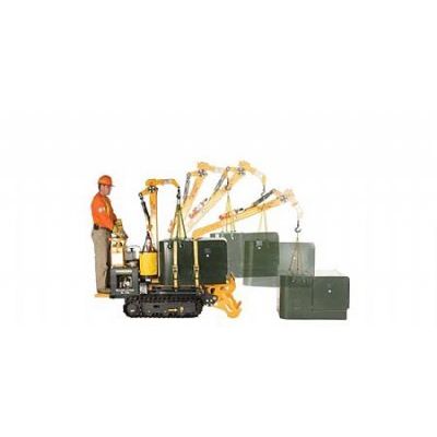 Transformer Lifter, the ML 1600 specifically designed for the Electric Utilities Industry to solve the issue of maintaining and handling heavy electrical components and material in reduced access locations. Our engineering team’s prime concern was the Safety elements of the ML 1600. Featured is the boom design operating in a single direction reducing operator concerns. The base carrier incorporates stabilizers which increases the load handling capacity and stability in different types of terrain. A compact design allows easy access through any opening as small as 32 inches and is easily manoeuvred in confined spaces. The ML 1600 is fitted with hydraulic cylinders which come complete with built-in counter balance valves to prevent uncontrolled decent.