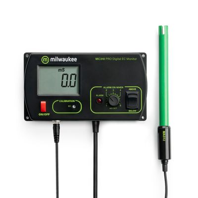 The MC Monitors are designed to continuously monitor pH, EC or TDS values directly in your reservoir. Each unit features a user selectable set-point. An LED visual alarm is activated and flashes when the pH, EC or TDS level rises either Above or Below (user selected) that set-point. All these instruments run on a 12V adapter so there`s no need to worry about failed batteries and each unit comes with mounting kit, probe, probe holder and starter calibration solution.