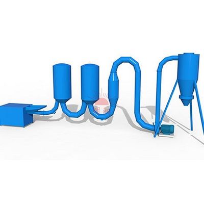 This dryer is suitable for drying materials of moisture 30~60%. The dryer is equipped with two fuel boilers, inlet, steel pipe, exhaust blower (fan), air lock and cyclone. Wet materials are put into the hopper. The fuel boiler generates hot air which mixes with wet materials and then is sucked into the pipes by the exhaust blower (fan) quickly. And then hot air is flowing and going though the curving pipes and buffer (drying chamber) of dryer, thus wet materials is finished to dry, and the dried materials are discharged from the outlet with air lock. This wood dryer reduces the moisture to 8~12% with the advantages of low cost consumption and high efficiency.