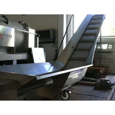 The chain conveyor (catenary) allows to realize routes in a single solution without overlapping of elements, what allows an economic saving, having only one engine and avoiding to couple several conveyors for the achievement of the product discharge destination. Suitable for transport of marcs discharged from the presses and for the elevation of products from the washing tanks.