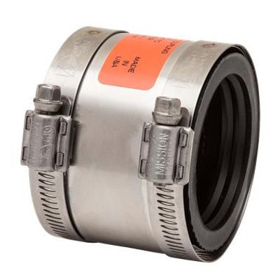 Shielded, transition couplings designed to connect similar and dissimilar pipe materials and sizes. Join Cast Iron, Copper, Schedule 40 Plastic, Stainless Steel, Steel, Tubular, Thinwall Plastic and Extra Heavy Cast Iron pipe. For non-pressure, gravity flow applications only. Recommended for above ground installations. Easy to install and reuse.