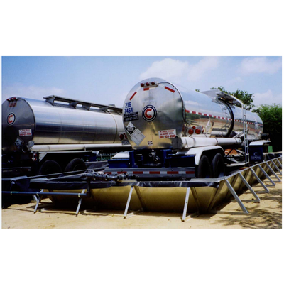 SpilGard secondary containment systems fully protect sites from spillage at tanker truck handling points. Unlike conventional portable berms that manage only modest leakage and spills, the SpilGard holds at least 110% of a tanker’s capacity. The unit also safeguards chemical drums, tote bins and equipment driven into its bay or lifted over its two-foot high walls.