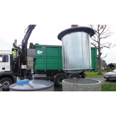 Only 1/3 of this container is visible above ground. The system consists of a highly resistant concrete liner and a galvanized steel container whose construction allows easy and quick emptying by the use of standard hoisting systems.Semi-undergrounds are particularly efficient in areas that have a cold climate, are on a slope or in a rural environment.The visible part can be customized to fit the surrounding environment.