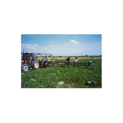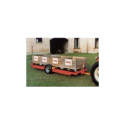 Bin trolley with unloading conveyors controlled from the cab. Collecting belt sliding on metallic guides positioned either on the right side or the left side, or on both sides. Sliding PVC belt on stainless steel guides, managed by a 12V electric starting motor connected to the tractor battery. Control switch is operated by the driver checking while the bins are filled. With road homologation.