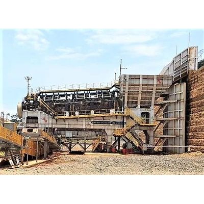 Separation and product sizing for diamond, gold, nickel or iron ore, coal, slag, quarry aggregates, sea defence, rip-rap, demolition, waste material, recycling and other minerals. RS212 Tri axle Heavy Duty Mobile Trommel Screen operating at an open cut diamond mine in South Africa, powered by Cat 3116TA Engine Hydraulic Drive reciprocating feeder & 1400TPH Trommel Screen. 200 Ton capacity material Feed Hopper designed to accept 100 Ton Dump Trucks.