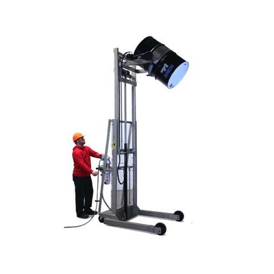 Drum lifters on wheels designed to lift and pour a drum at up to 106" (269 cm) high. More than just a drum dumper. . . controlled drum dispensing.