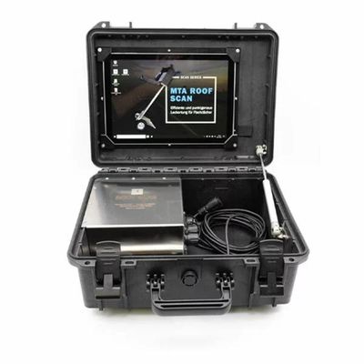 The MTA Roof Scan is an innovative leak detection device for use on all types of flat roofs. Precise location of leaks is possible with the MTA Roof Scan without time-consuming preparations (e.g. removal of the gravel in the test area). All you need to carry out the test is the correctly attached earthing cable, which can be used to establish a voltage circuit to the electronics, and sufficient water to moisten the test area.